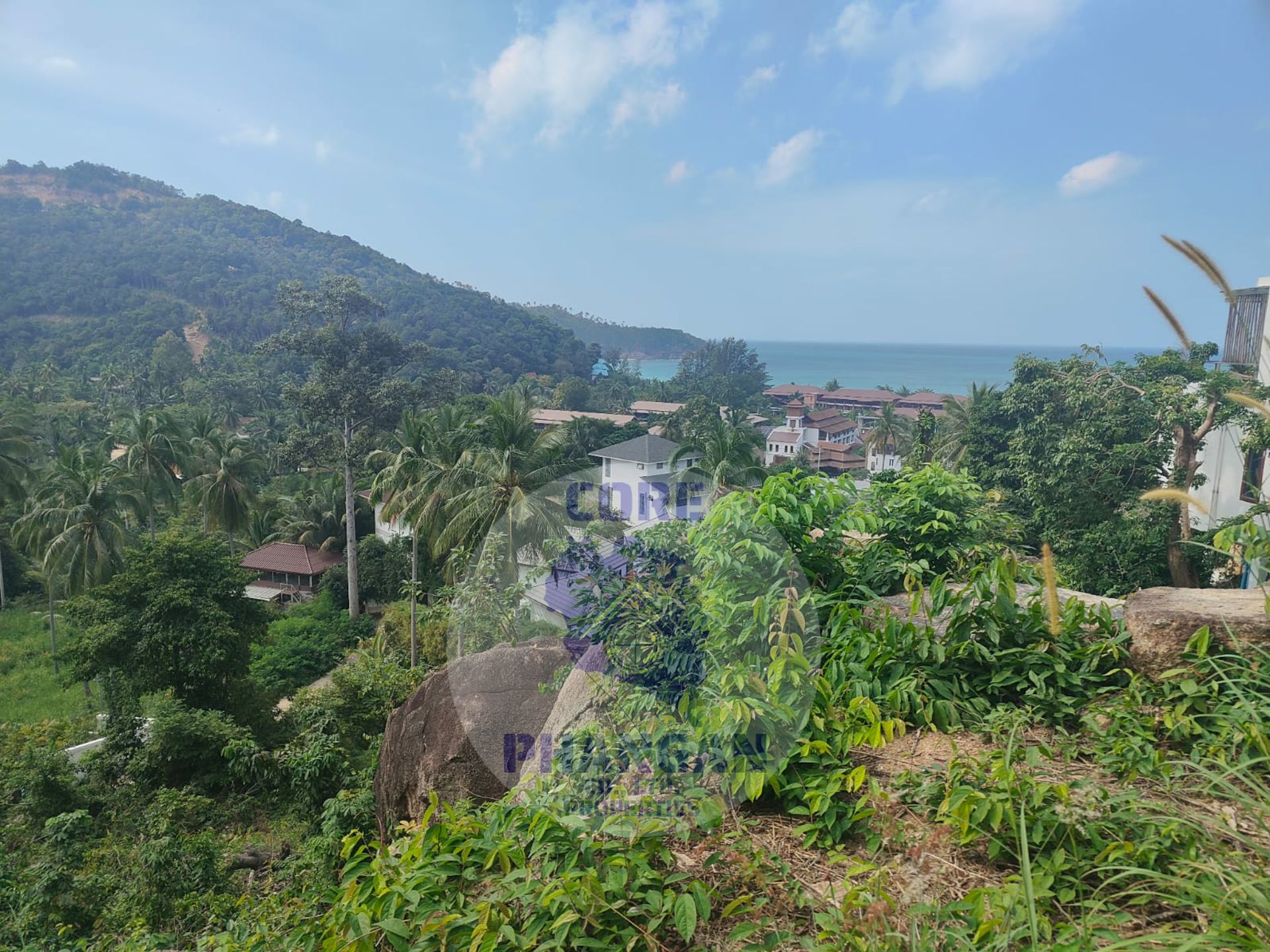 This unique land is located in the North West of Koh Phangan, overlooking Mae Haad beach and Koh Ma, with a panoramic sunset seaview and mountain view !!